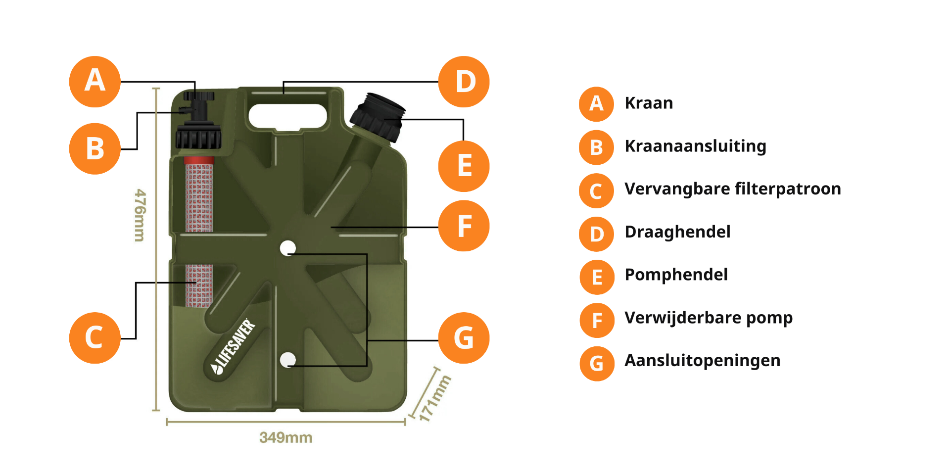 Specificaties van de Lifesaver Jerrycan 20.000 Groen