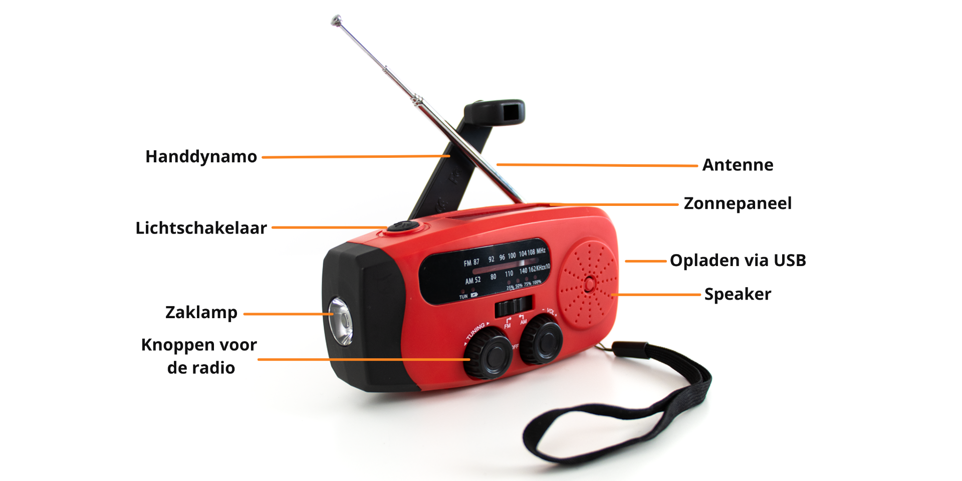 Naast radiofunctie beschikt de Emplay noodradio over een handige powerbank. Met de meegeleverde USB-kabel kun je kleine apparaten opladen, zoals een smartphone, tablet of navigatiesysteem. Daarnaast is de radio uitgerust met een krachtige zaklamp, zodat je ook in het donker altijd licht bij de hand hebt. Zo ben je goed voorbereid op onverwachte situaties.